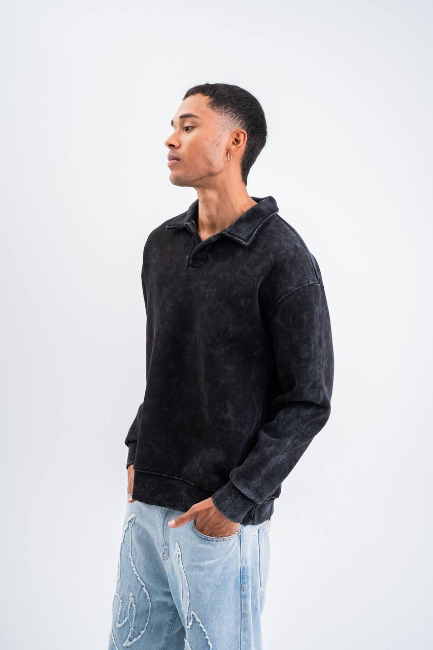 Polo Yaka Yıkamalı Oversize Sweatshirt